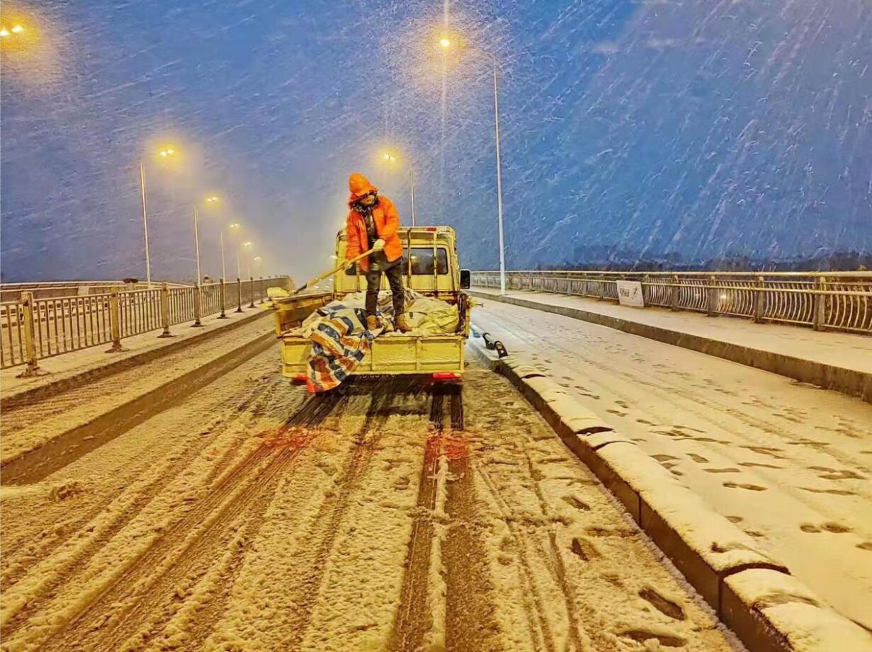 橋梁上,道路旁,活躍著一個個忙碌的身影;大雪中,冬日里,閃耀著一顆顆滾燙的初心。城建人時刻不忘肩上的使命,戰(zhàn)積雪、除堅冰,為蕪湖市民的安全出行保駕護航。