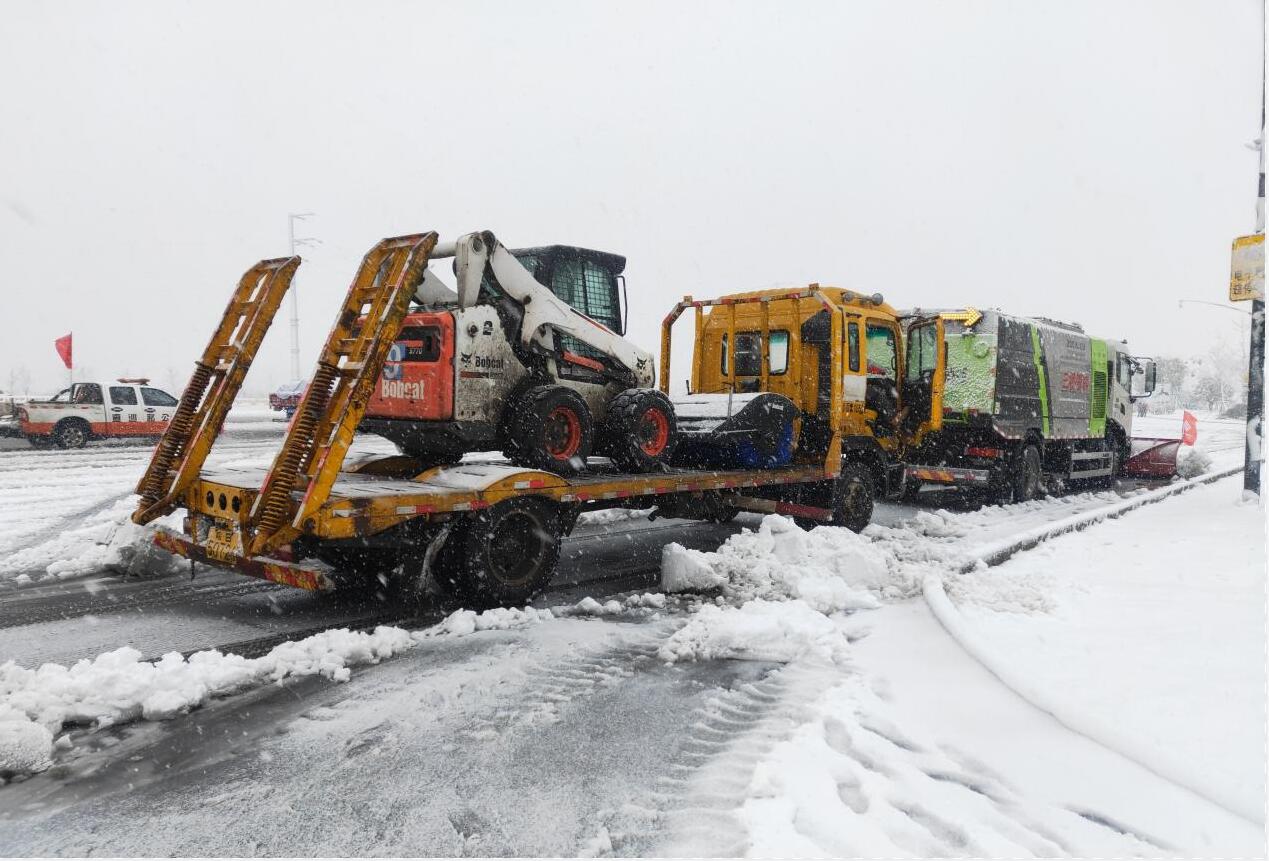 為保證除雪效率和除雪效果,城建人采用了組合式除雪作業(yè)方法,在各責(zé)任段投入裝載機、山貓等除雪設(shè)備配合人工進行鏟、掃、灑,快速清理重要道路橋梁積雪。