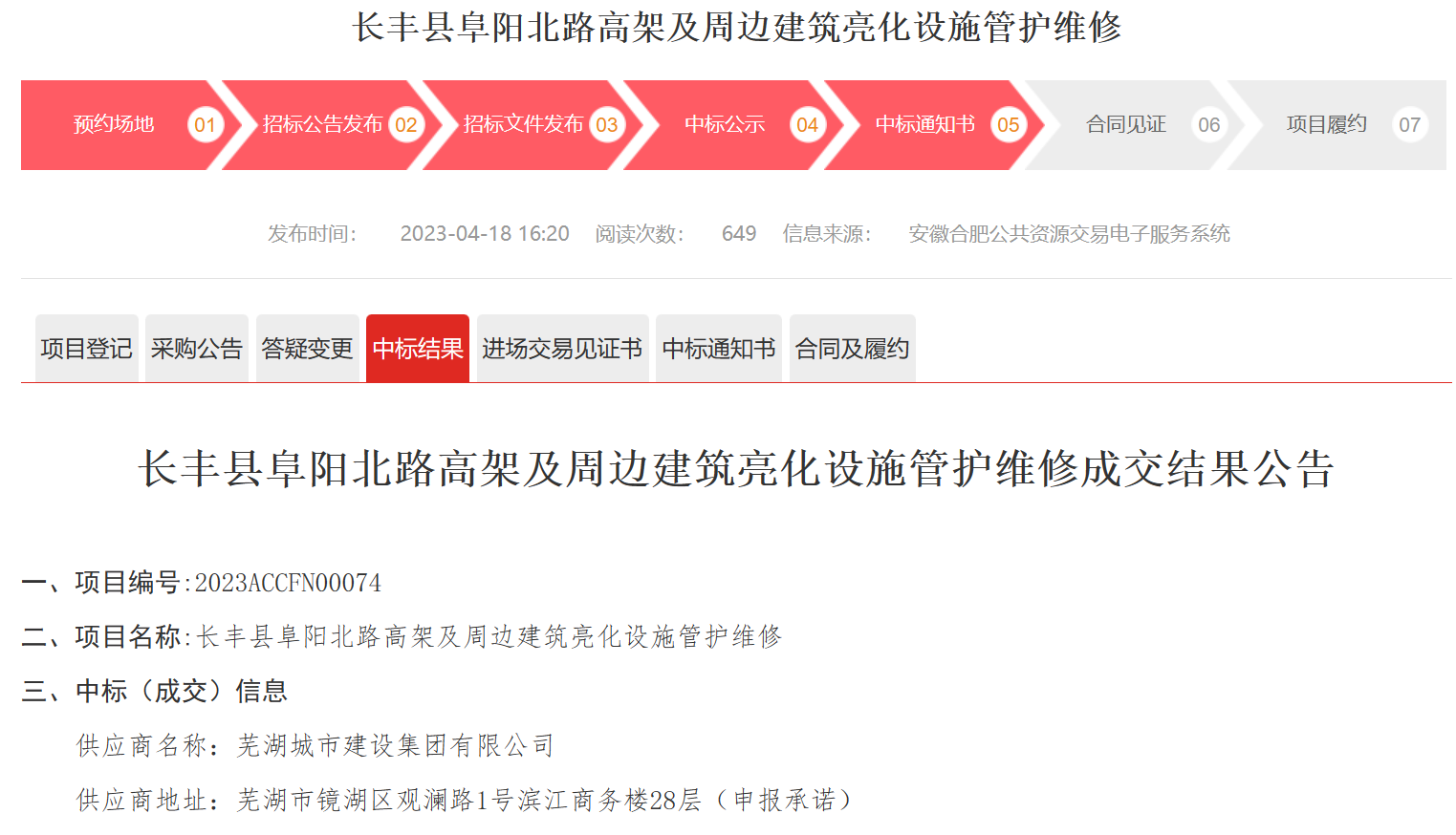 如清明節(jié)后第一杯綠茶——嫩芽香且靈,吾謂草中英。我司于2023年4月18日成功中標(biāo)長(zhǎng)豐縣阜陽(yáng)北路高架及周邊建筑亮化設(shè)施管護(hù)維修項(xiàng)目,標(biāo)志著我們?cè)谑姓B(yǎng)護(hù)領(lǐng)域又邁出了重要一步。