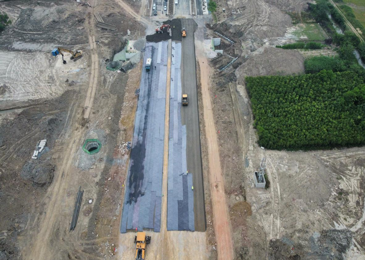 通過項(xiàng)目部的超前謀劃和精心組織,搶在梅雨季節(jié)來臨之前及時(shí)攤鋪水穩(wěn)封閉路床,神山東路K300~K650如期迎來了水穩(wěn)施工。開工前項(xiàng)目部對施工人員進(jìn)行了工藝工法、技術(shù)標(biāo)準(zhǔn)、安全環(huán)保施工等方面技術(shù)交底。施工過程中嚴(yán)格控制運(yùn)輸、攤鋪、碾壓等各個(gè)環(huán)節(jié)。施工現(xiàn)場,攤鋪機(jī)、壓路機(jī)、輸料車忙碌有序,作業(yè)人員嚴(yán)格按照技術(shù)交底和規(guī)范要求認(rèn)真施工。經(jīng)過10個(gè)小時(shí)緊張連續(xù)施工,順利完成了施工任務(wù)。此次順利攤鋪為確保通車目標(biāo)按期實(shí)現(xiàn),奠定了堅(jiān)實(shí)的基礎(chǔ)。