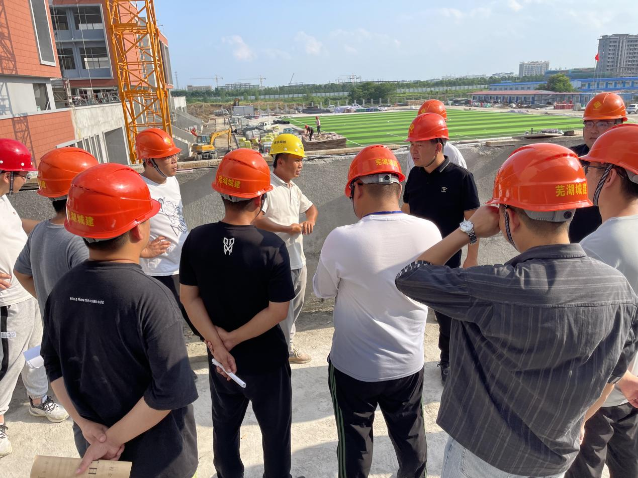 時(shí)值7月,天氣日漸炎熱,主體部分已完工,進(jìn)入白熱化階段,為給項(xiàng)目結(jié)好尾,收好官,順利完成交付,楊磊副總經(jīng)理親自來到施工現(xiàn)場指揮調(diào)度,同時(shí)從蕪湖帶來精兵強(qiáng)將,倒排工期,日夜兼程,緊抓整體進(jìn)度,落實(shí)細(xì)節(jié)把控。原先按專業(yè)崗位分工,現(xiàn)在實(shí)行一人多崗,24小時(shí)輪班制。施工現(xiàn)場處處車水馬龍,機(jī)械轟鳴,一派井然有序、熱火朝天的繁忙景象。但剩下的時(shí)間不多,我們面臨的考驗(yàn)依舊嚴(yán)峻,各教學(xué)樓的裝飾裝修是后期工作的重中之重,作業(yè)面積大,難度系數(shù)高。地面水磨石,常規(guī)需要3個(gè)月才能完成,時(shí)間上來不及就增加機(jī)械人工,多個(gè)樓層同步施工;墻面真實(shí)漆,原先有20多個(gè)吊籃作業(yè),現(xiàn)在又加了20多個(gè),流水作業(yè),各施工段交叉作業(yè);一臺(tái)泵車進(jìn)入現(xiàn)場,換人不換車,除去加油時(shí)間,全天工作,24小時(shí)無休。用行動(dòng)述說決心。