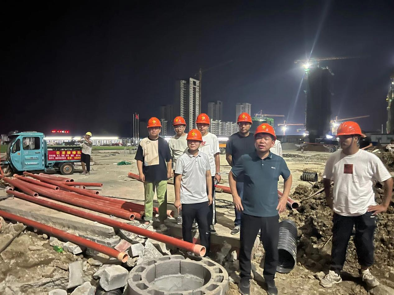 在楊總的統(tǒng)籌下,各位同事思路清晰,現(xiàn)場指揮調(diào)度不見一絲慌亂,充分利用吃飯時(shí)間開展碰頭會(huì),交流工作計(jì)劃,協(xié)調(diào)各交叉作業(yè)面。每天傍晚?xiàng)羁値ьI(lǐng)各區(qū)域管理人員去全場各處查看施工進(jìn)度情況,根據(jù)既定的施工安排,把握一天的施工進(jìn)度。到了夜晚,現(xiàn)場依舊燈火通明,如若白晝,各單位各部門按照排好的計(jì)劃,有條不紊地進(jìn)行施工作業(yè),凝心聚力保目標(biāo)。相信在大家的努力奮斗下,我們必然能夠圓滿完成任務(wù),給集團(tuán),給亳蕪園區(qū),給亳州市交上一份滿意的答卷。人類的贊歌是勇氣的贊歌,而城建人的贊歌是奮斗者的贊歌,時(shí)間會(huì)帶給我們最好的答案。