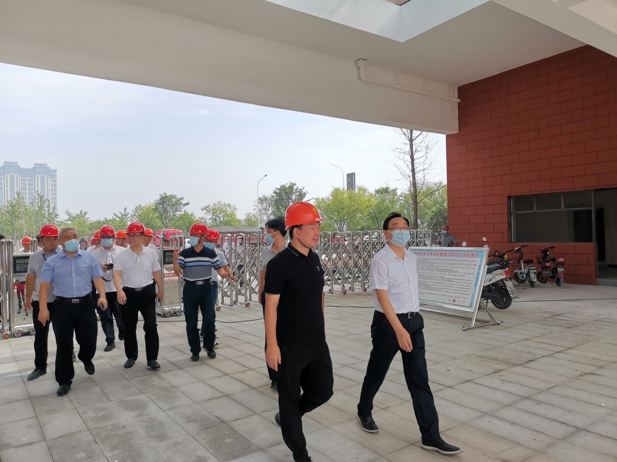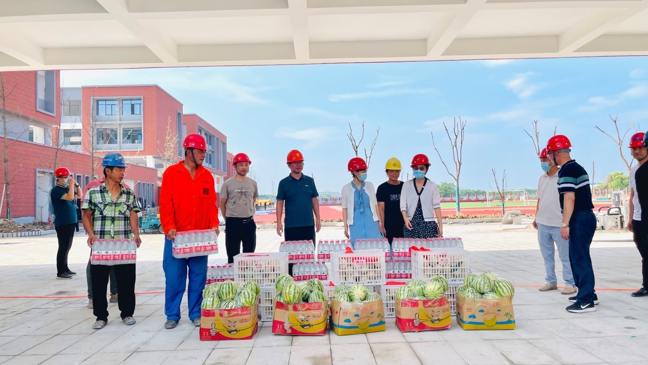 次日,亳蕪園區(qū)管委會(huì)劉主任、教育局周局長(zhǎng)到九小項(xiàng)目檢查指導(dǎo)工作,帶去慰問(wèn)瓜果冷飲物品,關(guān)心高溫天氣下九小施工人員的身體狀況。同時(shí)視察九小項(xiàng)目各個(gè)建筑物的完成情況,確保9月能夠迎來(lái)九小的第一批學(xué)生,也能夠提供給學(xué)生們一個(gè)安全舒適的學(xué)習(xí)環(huán)境。