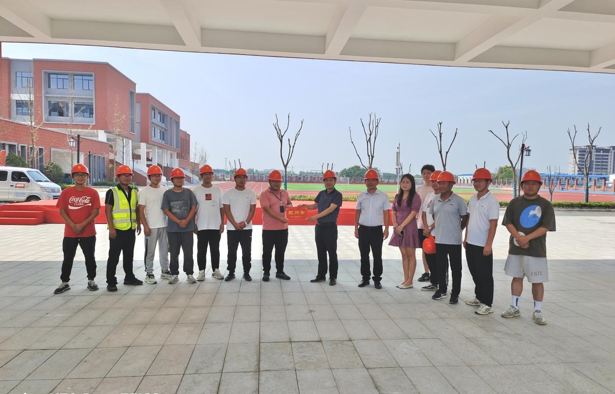 8月18日,亳州市市委副書(shū)記秦鳳玉,安徽師范大學(xué)黨常委、副校長(zhǎng)朱家存,亳蕪園區(qū)黨委書(shū)記湯德余出席驗(yàn)收儀式。中江集團(tuán)董事長(zhǎng)朱志福作為施工單位代表出席活動(dòng)并發(fā)表講話,我們?cè)诮ㄔO(shè)過(guò)程中,經(jīng)歷了兩次疫情、持續(xù)高溫的炙烤的考驗(yàn),仍然能夠順利地通過(guò)各方驗(yàn)收,成功交付使用,充分證明我們的實(shí)力與決心。這個(gè)項(xiàng)目的完工,向園區(qū),向亳州市證明了我們有著深刻為人民服務(wù)的決心,面對(duì)苦難敢打敢拼的精神,不怕辛苦萬(wàn)難的毅力。活動(dòng)結(jié)束后,朱董去往一線三個(gè)施工現(xiàn)場(chǎng)視察工作,并對(duì)九小項(xiàng)目部人員進(jìn)行慰問(wèn)和鼓勵(lì),并號(hào)召另外兩個(gè)項(xiàng)目也要延續(xù)九小項(xiàng)目的扎實(shí)作風(fēng),做一支能打仗、打硬仗的隊(duì)伍。