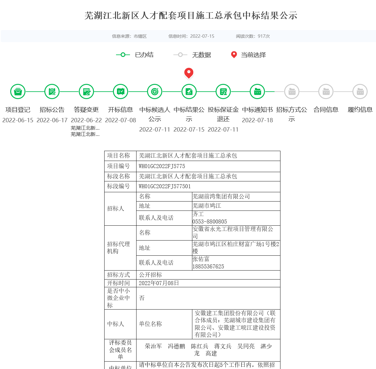 爍玉流金,火熱七月。由安徽建工、蕪湖城建、皖江建投組成的聯(lián)合體中標(biāo)了蕪湖江北新區(qū)人才配套項(xiàng)目,中標(biāo)價(jià)4.58億元。