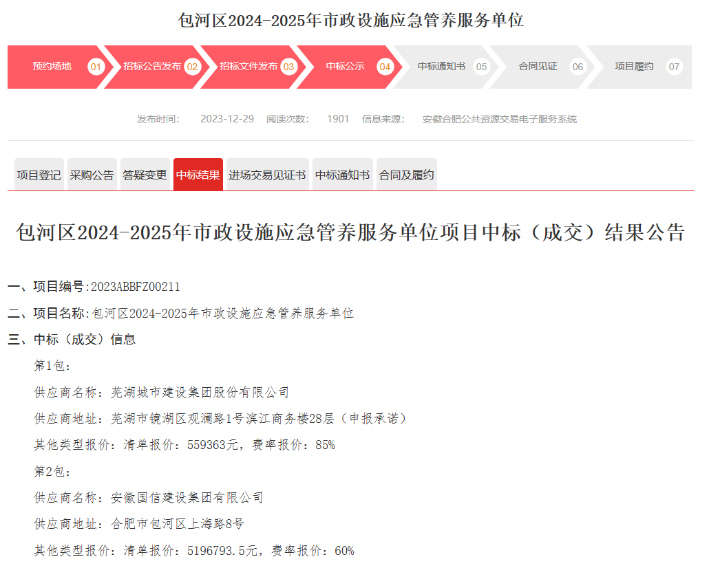 2023年12月29日,我司中標(biāo)合肥市“包河區(qū)2024-2025年市政泵站設(shè)施日常管養(yǎng)”項(xiàng)目與“包河區(qū)2024-2025年市政設(shè)施應(yīng)急管養(yǎng)服務(wù)單位”項(xiàng)目,這兩個(gè)項(xiàng)目的成功中標(biāo),既是我司阿米巴2024年開篇之作,亦是我們兩年間耕耘包河區(qū)市政養(yǎng)護(hù)市場(chǎng)的收獲。換句話說,這既是新起點(diǎn),也是新征程。