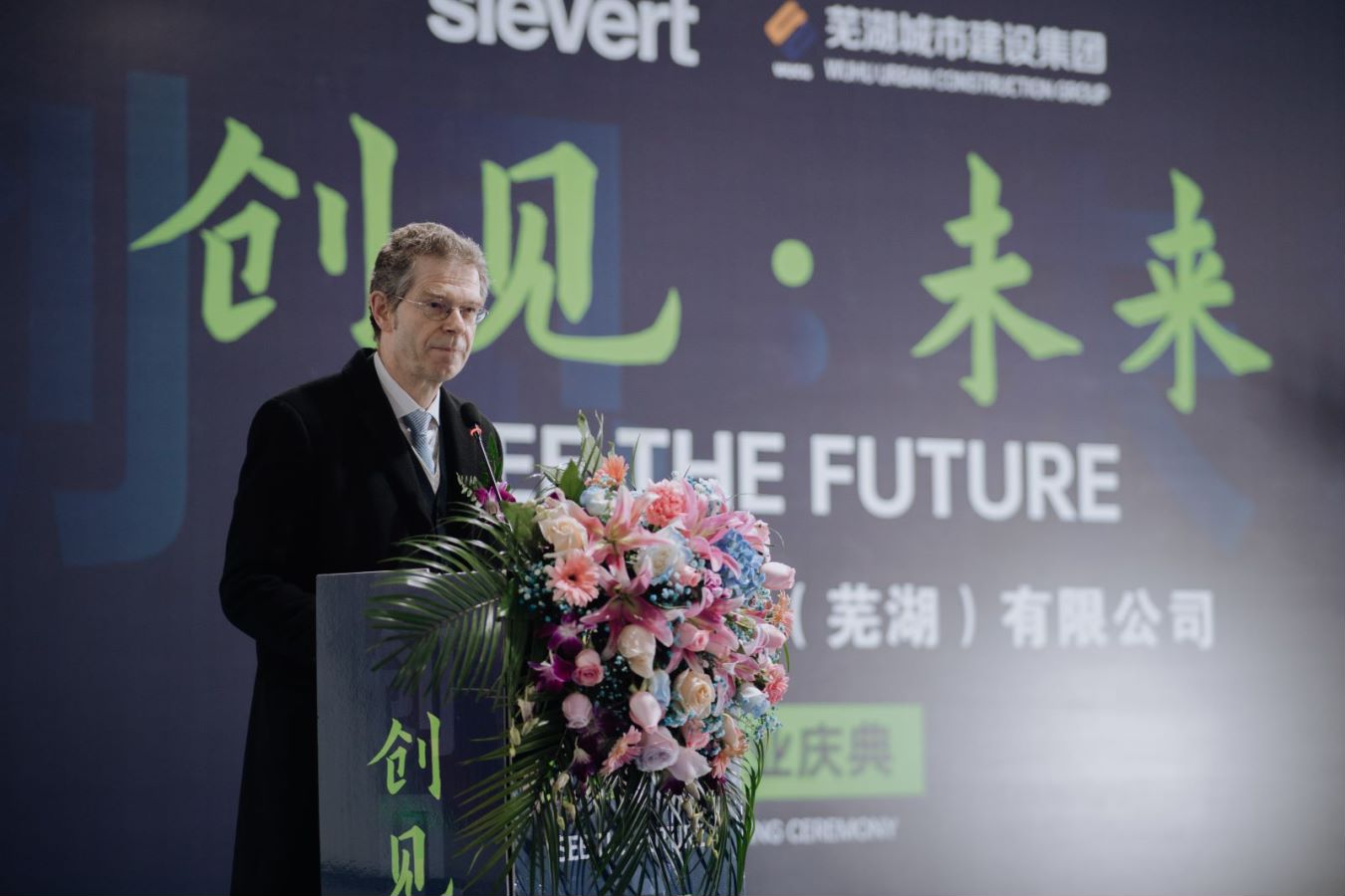 開業(yè)慶典上,德國奚偉德教授發(fā)表開業(yè)致辭,他對到場的來賓表示熱烈的歡迎和感謝,對蕪湖城建集團的建設(shè)質(zhì)量與效率表示肯定。他相信新工廠必將以過硬的品質(zhì)、嚴苛的環(huán)保標準帶來更優(yōu)秀且環(huán)保的產(chǎn)品。