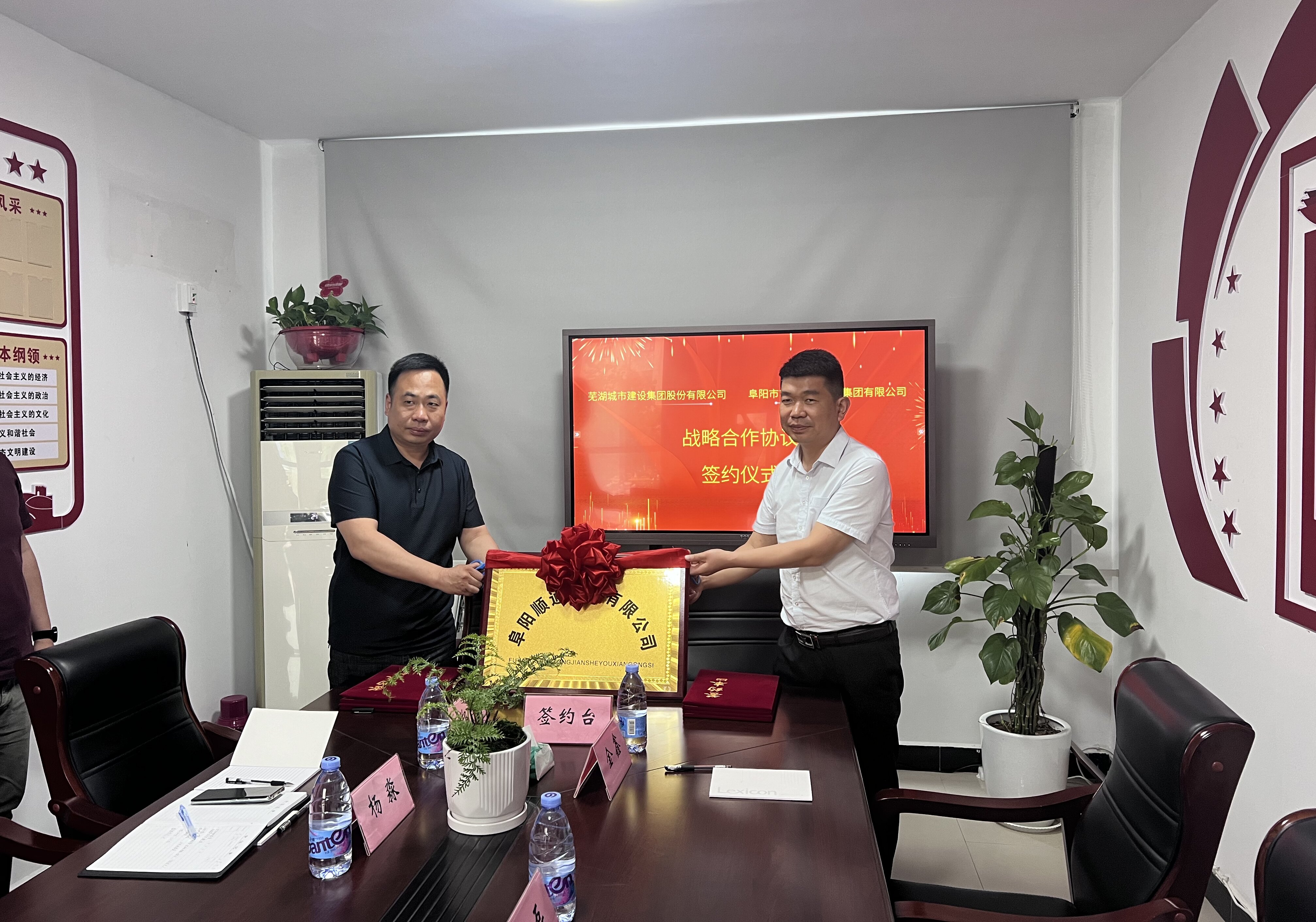2024年5月22日,蕪湖城市建設(shè)集團股份有限公司與阜陽市市政園林工程集團有限公司舉行戰(zhàn)略合作協(xié)議簽署及合資公司剪彩儀式,簽約及剪彩儀式在阜陽市政園林集團舉行。蕪湖城建集團副總經(jīng)理楊磊,阜陽市政園林集團董事長王駿共同出席并見證簽約儀式,蕪湖城建集團市場部經(jīng)理金鑫和阜陽市政園林集團副總經(jīng)理楊淼分別代表雙方進行簽約。