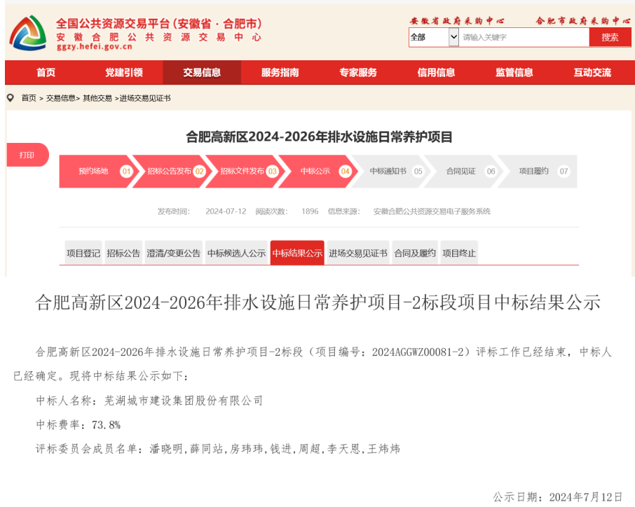 7月12日,蕪湖城建集團成功中標“合肥高新區(qū)2024-2026年排水設施日常養(yǎng)護項目”,該項目涵蓋了多個方面的工作,包括但不限于排水管網的巡查、清潔、維修保養(yǎng)以及汛期的排水設施應急處置等。
