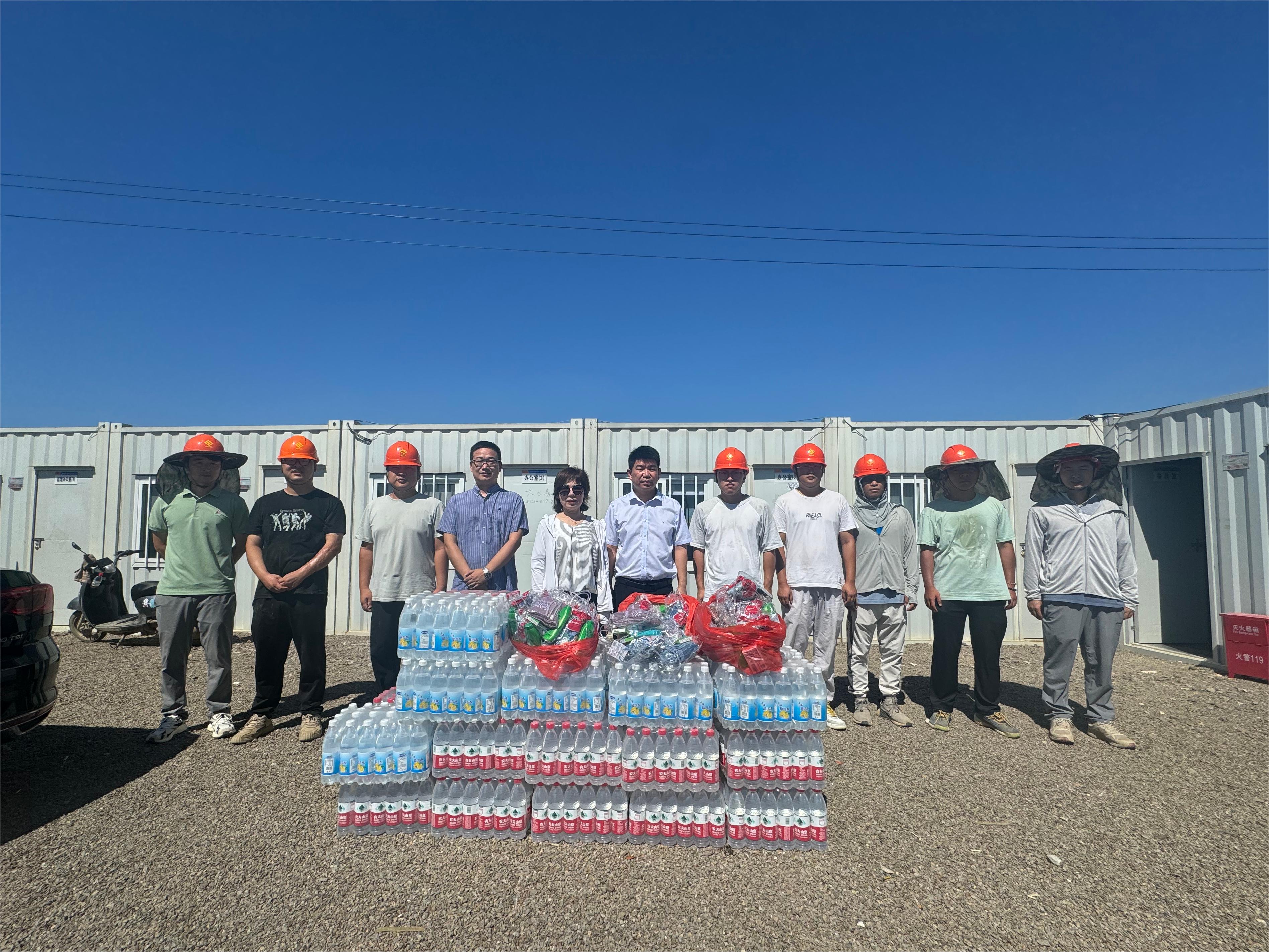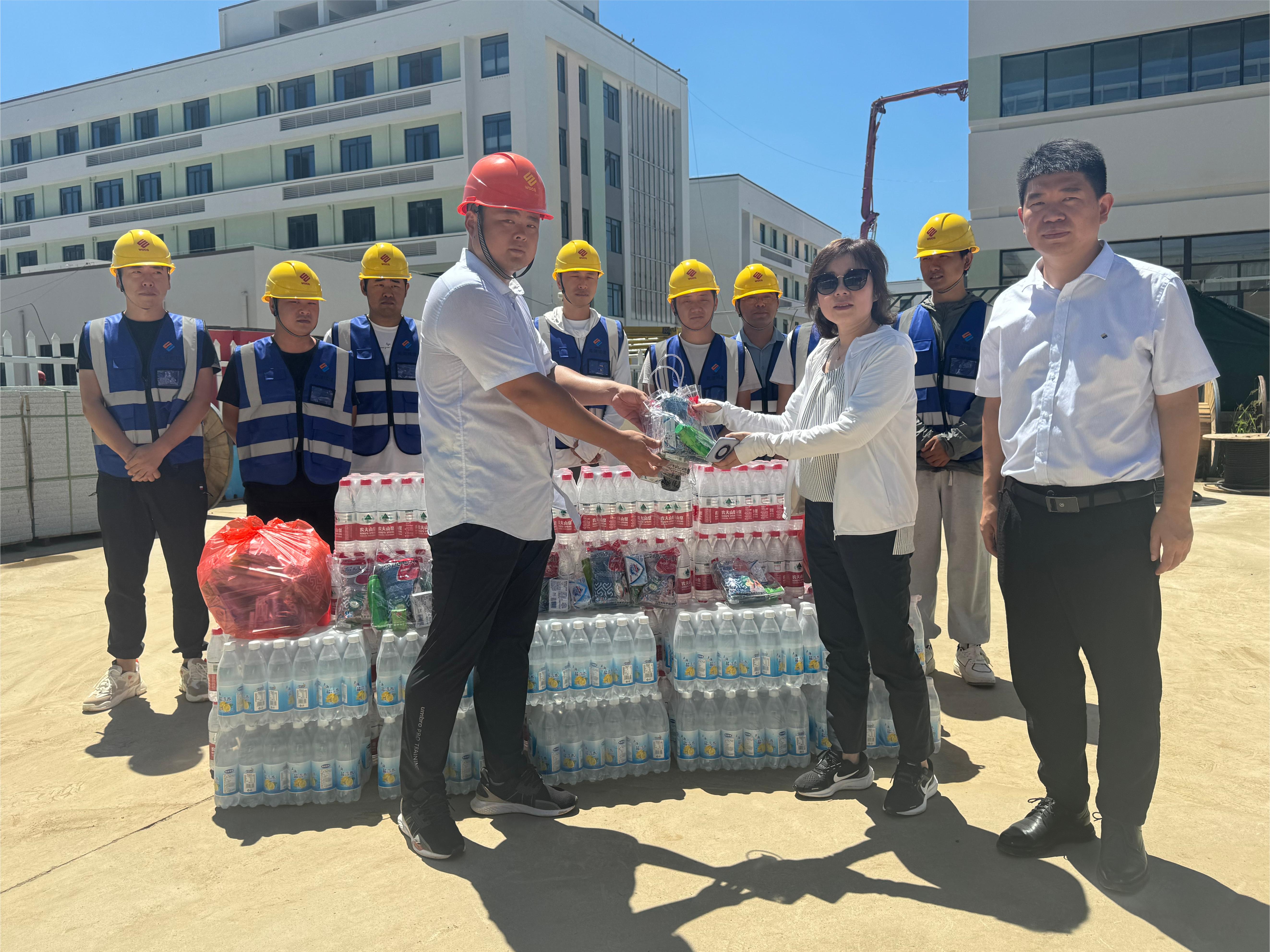 朱志福一行對(duì)現(xiàn)場(chǎng)一線員工頂烈日、搶工期,力爭(zhēng)打造一流工程的工匠精神給予高度肯定和贊揚(yáng),并送上防暑降溫慰問用品,隨后認(rèn)真聽取項(xiàng)目建設(shè)進(jìn)度、目前遇到的困難、后續(xù)進(jìn)度規(guī)劃等情況匯報(bào)。他強(qiáng)調(diào)項(xiàng)目部要嚴(yán)格保障現(xiàn)場(chǎng)一線人員安全,落實(shí)安全生產(chǎn)主體責(zé)任、強(qiáng)化防暑降溫措施、合理調(diào)配戶外作業(yè)時(shí)間,為員工營(yíng)造安全健康的工作環(huán)境,并圍繞項(xiàng)目進(jìn)度、后期運(yùn)營(yíng)規(guī)劃等方面提出意見建議,對(duì)項(xiàng)目推進(jìn)問題難點(diǎn)建言獻(xiàn)策,全力支持項(xiàng)目建設(shè)。